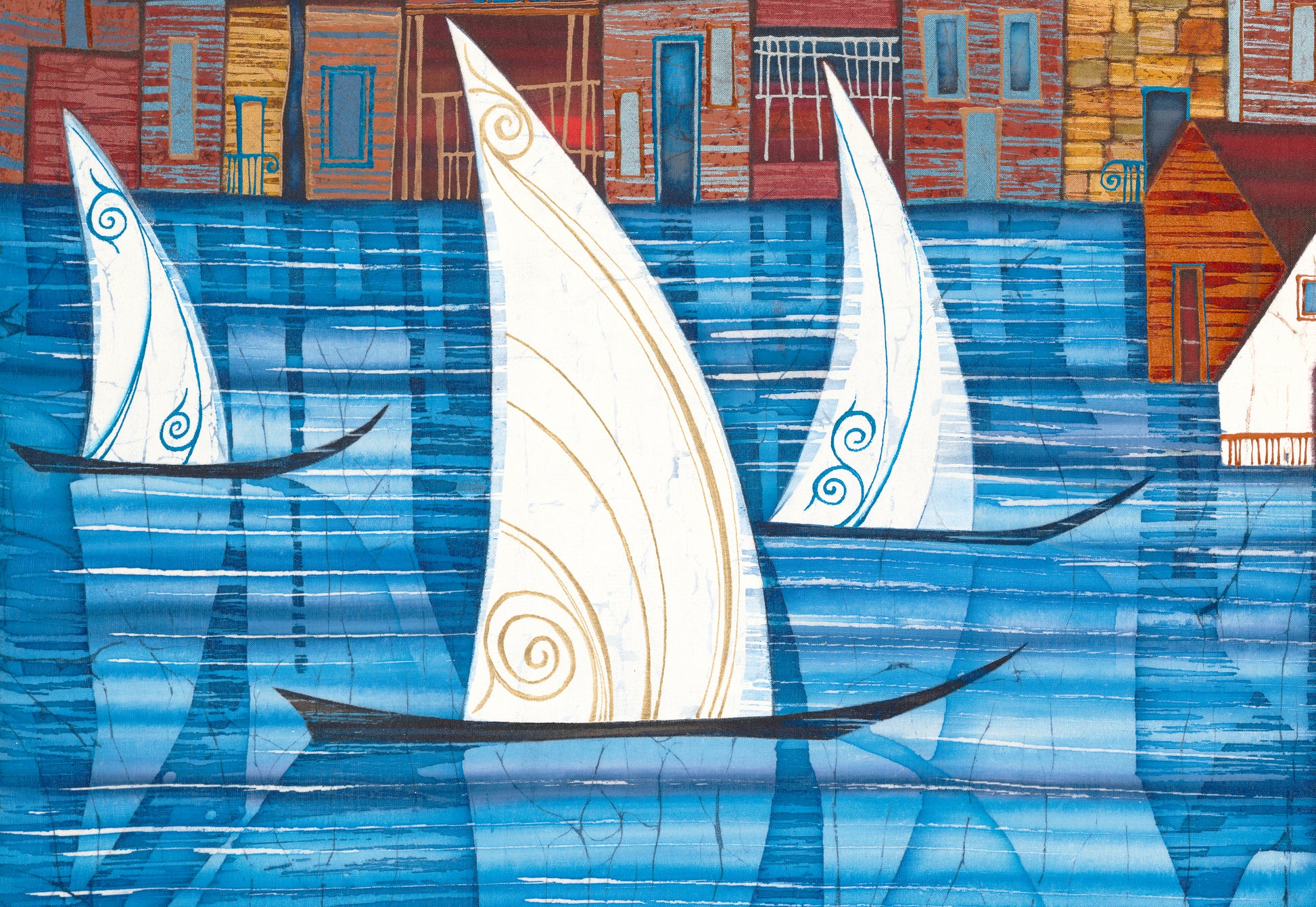 Calm waters, like a perfect crystal clear mirror, reflect weightless sailboats suspended in serenity. But nothing is constant but change. And with the sudden change of wind the playful spirits will fill the sails up, releasing them from the stillness and setting boats up to a new course.