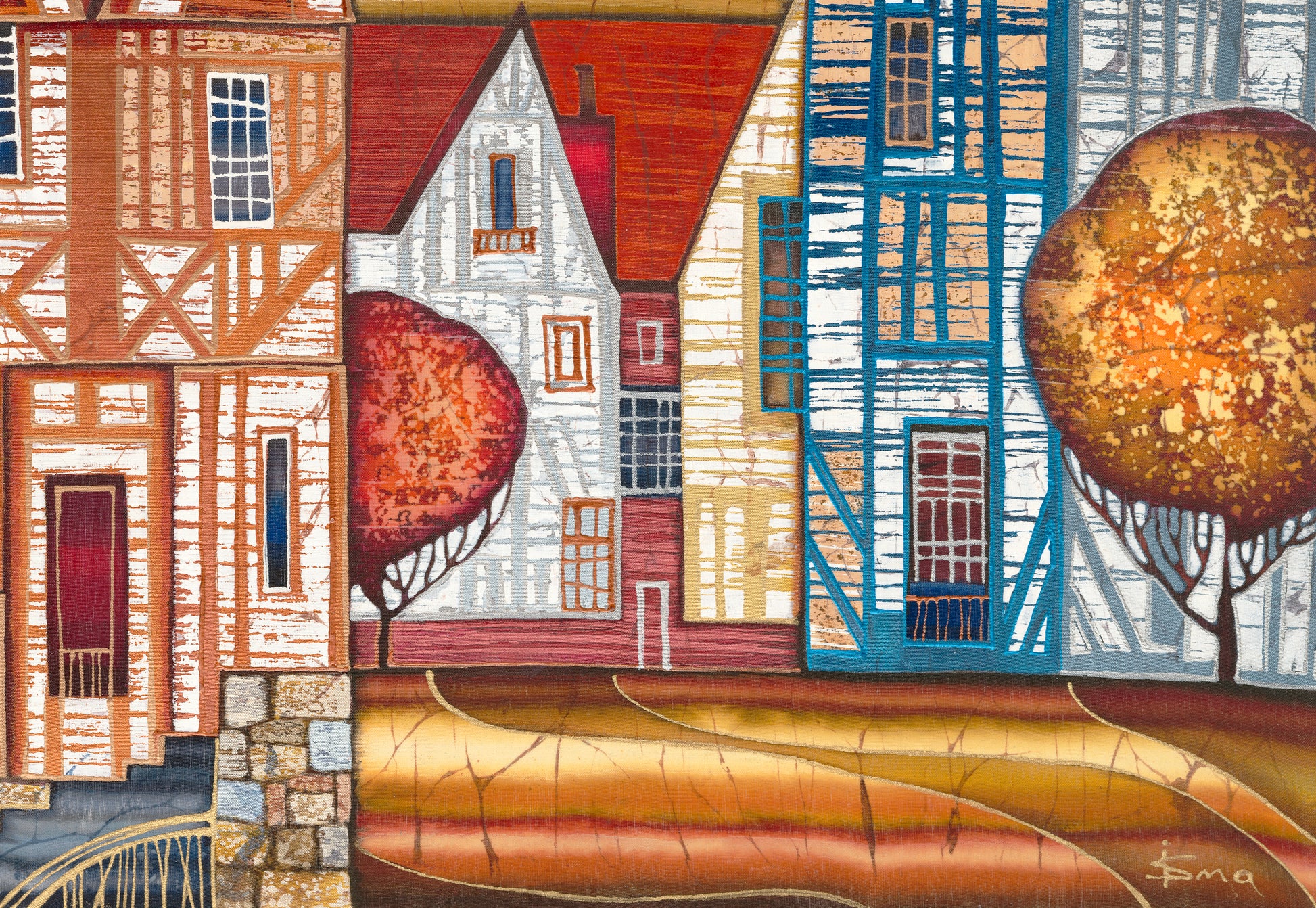 - The artwork is covered with archival quality varnish as a final layer. It has a fine and elegant satin finish and protects silk against dust and other elements