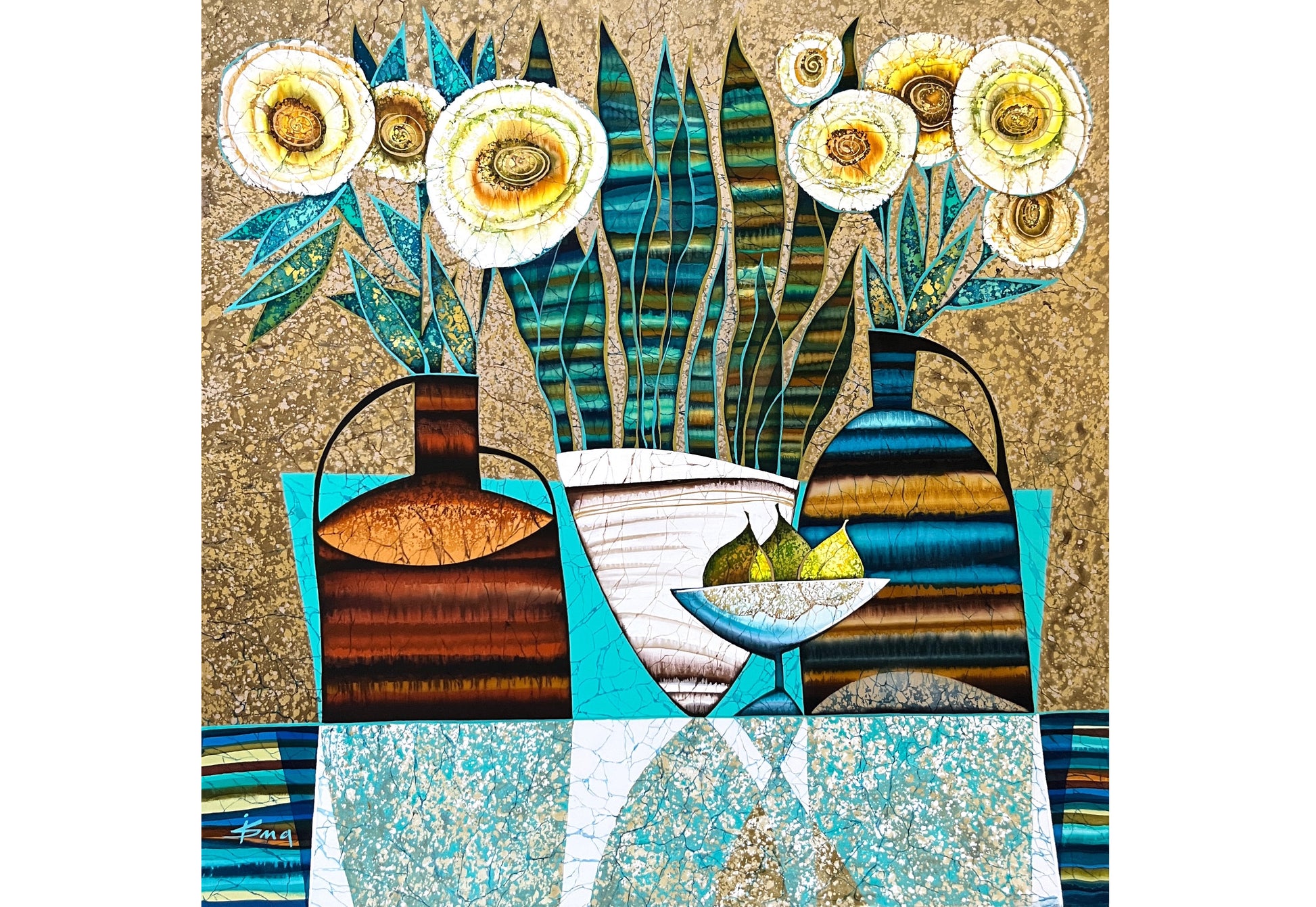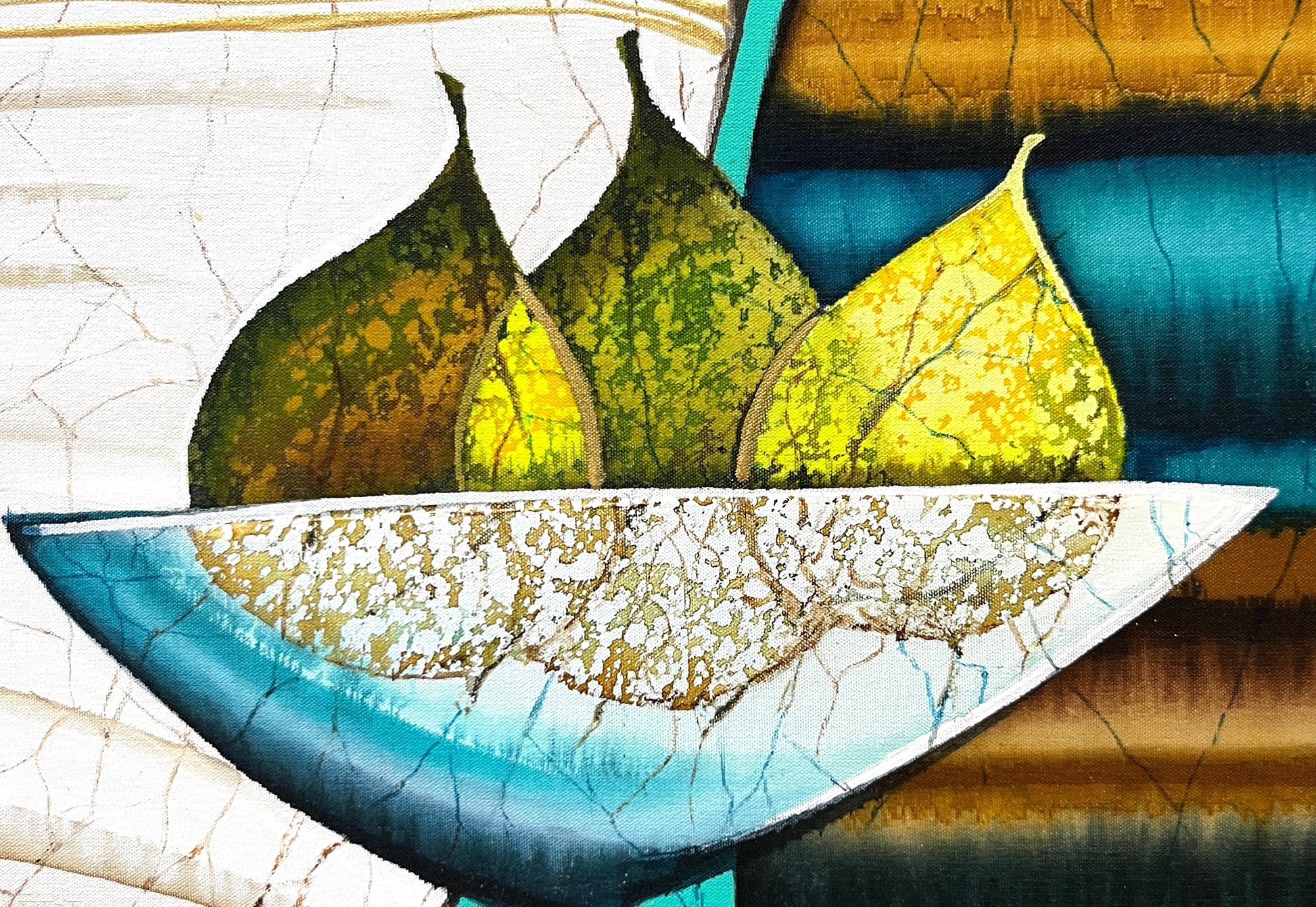 - The artwork is covered with archival quality varnish as a final layer. It has a fine and elegant satin finish and protects silk against dust and other elements
