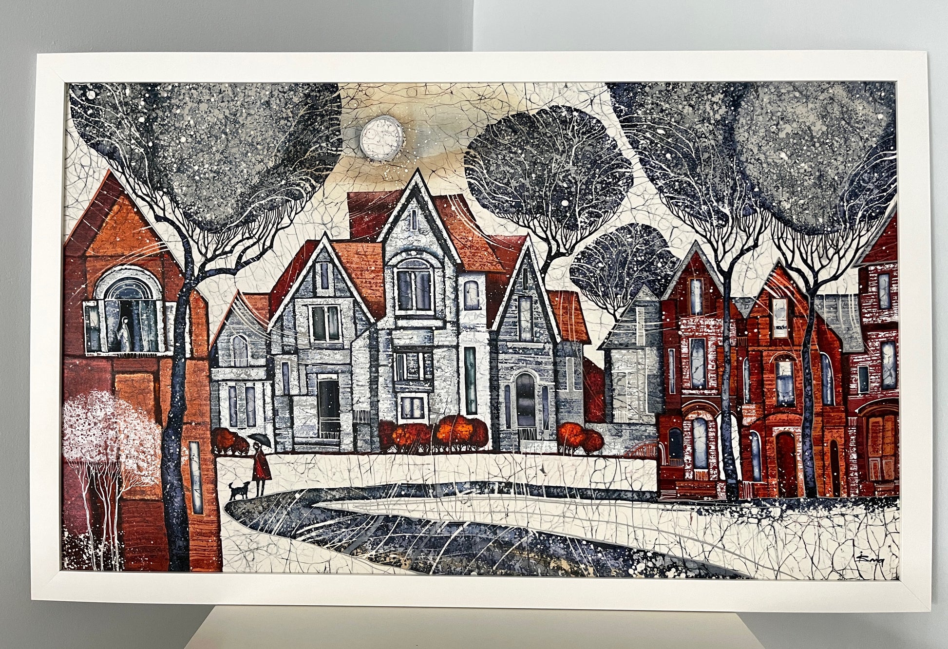 - The painting is currently framed in top quality solid white wood frame.